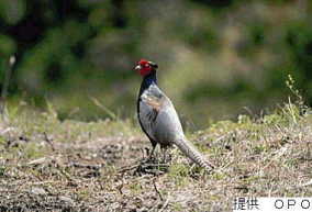 キジ目キジ科の鳥。雄は顔が裸出し赤色。頸・胸・下面全体は暗緑色。背面の色彩は甚だ複雑美麗。脚に距ケヅメを有し、尾は長く多数の黒帯がある。雌は淡褐色で、黒斑があり、尾は短い。低木林や草原にすむ。日本特産。1947年、日本鳥学会で国鳥に選定。今日では、大陸産で白い首輪のあるものと同種に扱う。古称きぎす・きぎし。なお、キジ目には、キジ科(ウズラ・シャコ・ヤマウズラ)・ライチョウ科・シチメンチョウ科・ホロホロチョウ科・ツカツクリ科などがあり、地上性の雑食性鳥類。伊勢物語「むめのつくり枝に―をつけて奉るとて」
