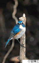 るり‐びたき【瑠璃鶲】 スズメ目ヒタキ科の鳥。全長約15センチメートル。雄は背面が青く、腹面は白で脇が橙色。雌は背面が緑褐色で、腹面が白色。鳴き声が美しい。アジア大陸東部に分布し、日本では九州を除く全国の亜高山帯にすみ、秋・冬に低地に移動する。