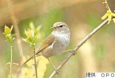 うぐいす【鶯】ウグヒス スズメ目ヒタキ科ウグイス亜科の鳥。大きさはスズメぐらい。背面褐緑色、下面白く、白色の眉斑がある。低山帯から高山帯の低木林に至るまで繁殖し、冬は低地に移り、市街地にも現れる。さえずりの声が殊によい。別名、春鳥・春告ハルツゲ鳥・花見鳥・歌詠ウタヨミ鳥・経読キヨウヨミ鳥・匂鳥・人来ヒトク鳥・百千モモチ鳥など。万葉集20「春立たばまづ我が宿に―は鳴け」