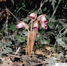 なんばん‐ギセル【南蛮煙管】 ハマウツボ科の一年生寄生植物。ススキ・ミョウガなどの根に寄生し、全体に葉緑素を欠く。高さ約15センチメートル。秋、淡紅紫色花を頂につけ、横を向いて開く。花冠は長い筒形、先は5裂。古名、おもいぐさ。 季節、秋。