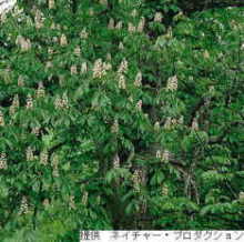 とち‐の‐き【橡・栃】 トチノキ科の落葉高木。各地の山地に自生。高さは約25メートル、周囲は2メートルに達する。葉は長柄で対生。5月頃、枝頂に白色に紅のかかった花を多数つける。雌花・雄花、両性花がある。 果サクカは円錐形で3裂し、光沢ある褐色の種子をもつ。種子からあく抜きして澱粉を採り、また、栃餅・栃粥などに作る。材は板に挽き、また、刳物クリモノに用いる。庭木・街路樹ともする。別称ウマグリ(馬栗)は英語名の直訳。とち。7葉樹。「橡の花」は季節、夏 。「橡の実」は 季節、秋 。