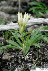 リンドウ科の多年草。高山帯に生える。葉は細く厚く、花は筒状、帯黄白色で緑斑がある。夏、開花。根は当薬(センブリ)のように苦く、薬用。